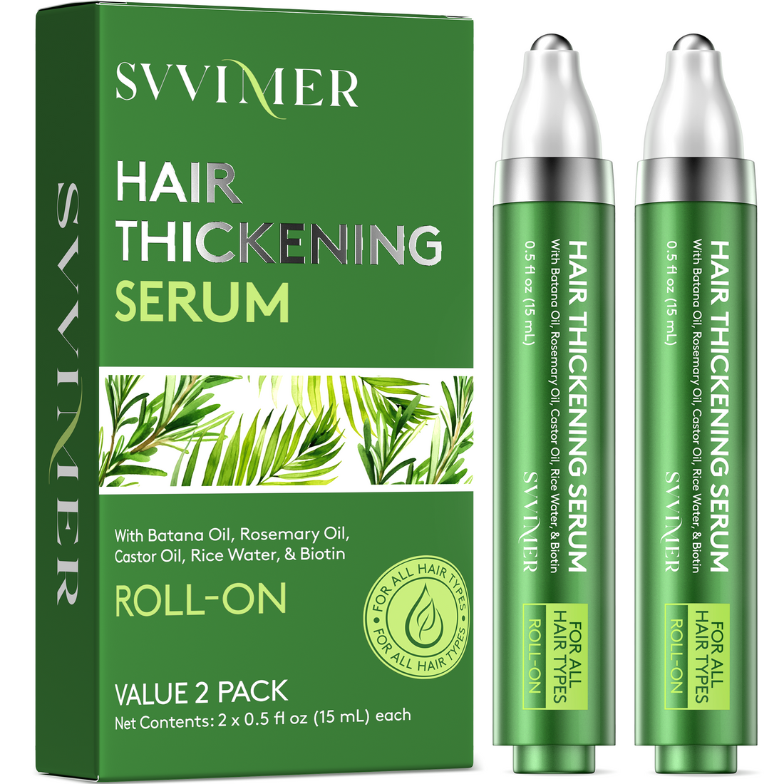 Svvimer Hair Growth Serum Roll On - with Rosemary Batana Oil Biotin Thickening Scalp Serum for Thinning Hair and Loss - for Women and Men 2 PCS 15ml/each